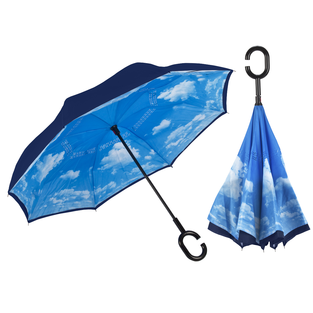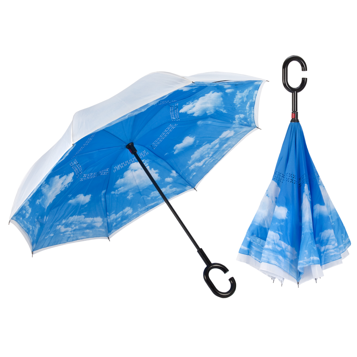 מטריה הפוכה שניתן להיכנס בנוחות לרכב או להעמידה על הרצפה